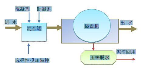 磁分離水體凈化相比傳統(tǒng)技術(shù),其取代了二次沉淀池、過濾器、污泥濃縮池、污泥脫水系統(tǒng)等處理環(huán)節(jié),對污染水體實(shí)現(xiàn)主動(dòng)吸附打撈,大幅縮短工藝流程及反應(yīng)時(shí)間,節(jié)省占地面積和投資,為冶金濁環(huán)水處理帶來了工藝變革。